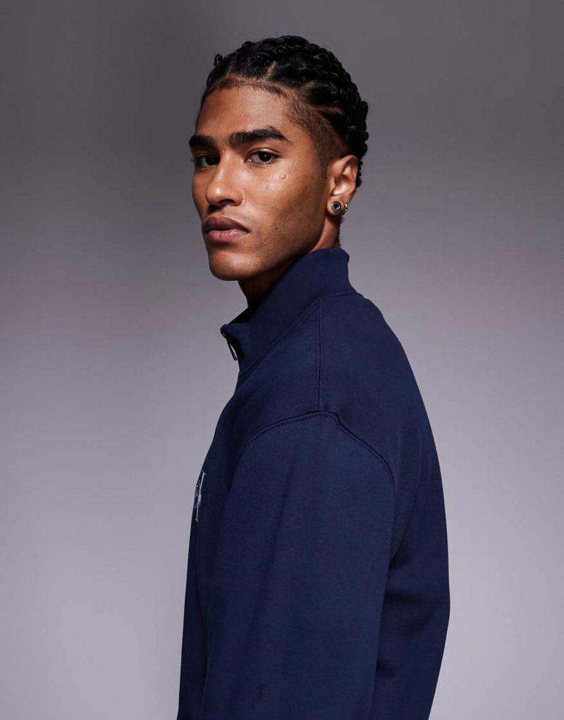 Jeans Chest Logo 1/4 Zip Sweatshirt In Navy