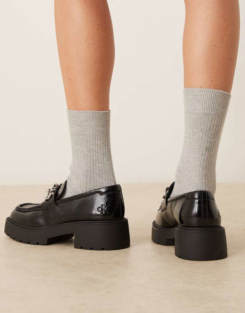 Jeans Chunky Leather Loafer With Chain Detail In Black