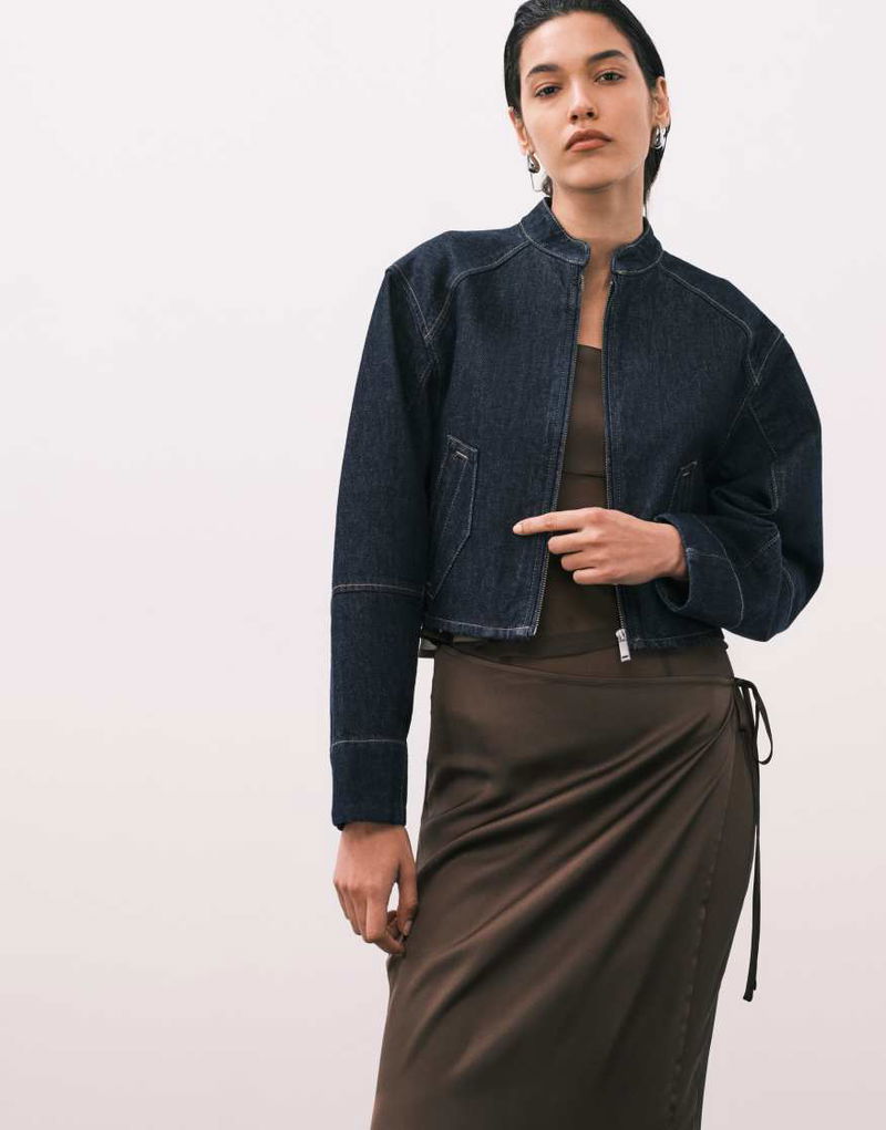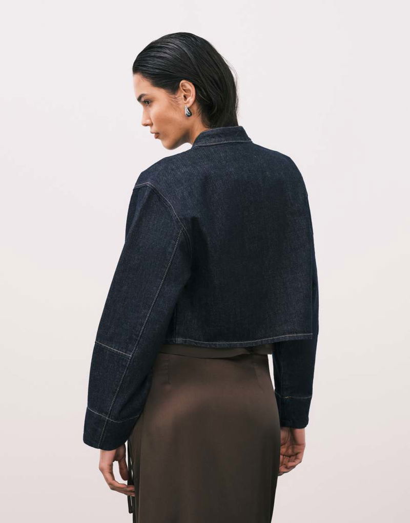Jeans Collarless Denim Jacket With Tie Waist In Dark Denim