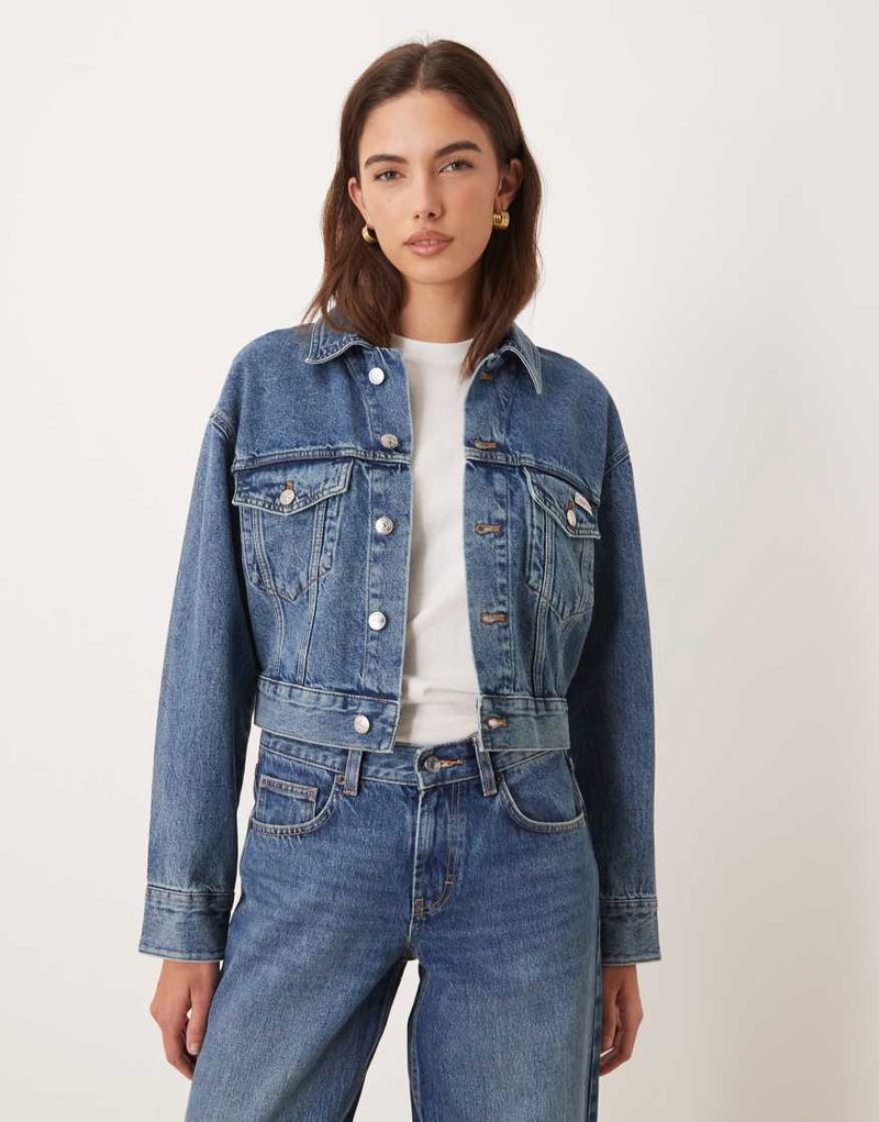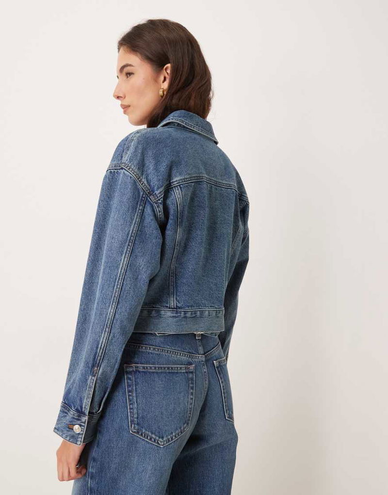 Jeans Cropped Denim Trucker Jacket In Mid Wash Blue
