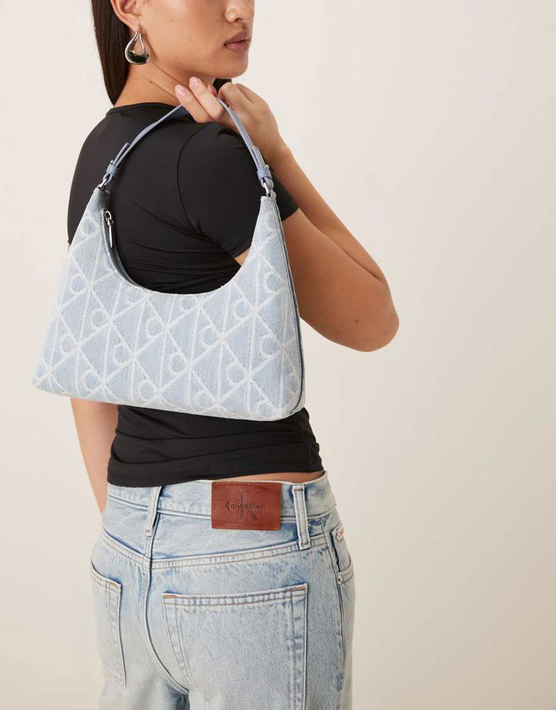 Jeans Denim Logo Print Shoulder Bag In Light Wash