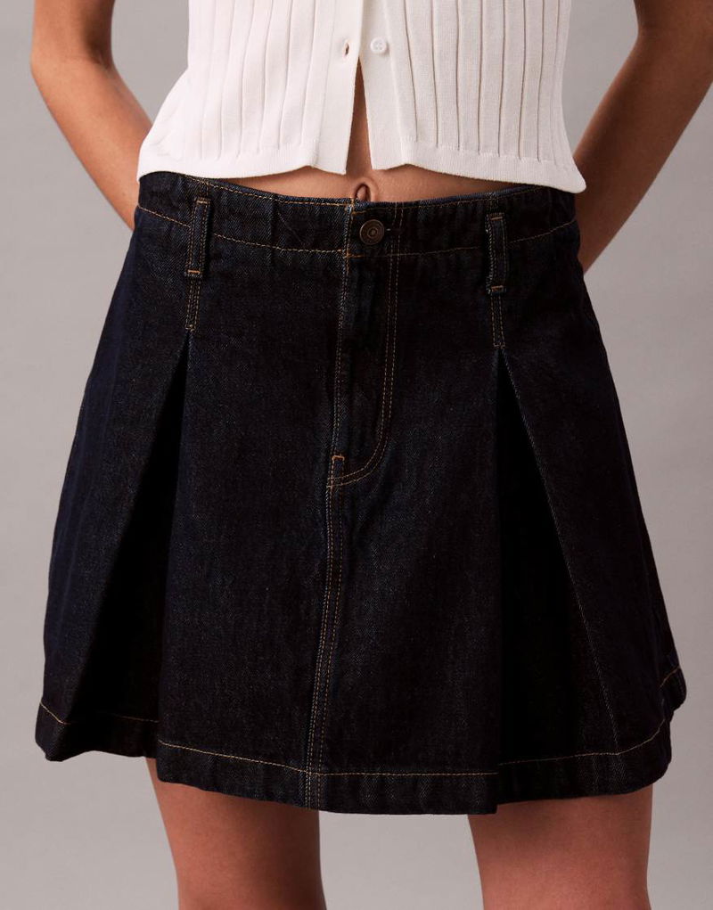 Jeans Denim Pleated Skirt In Indigo Rinse