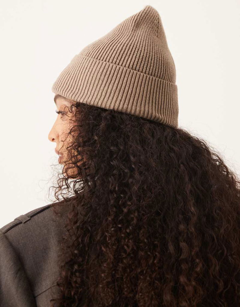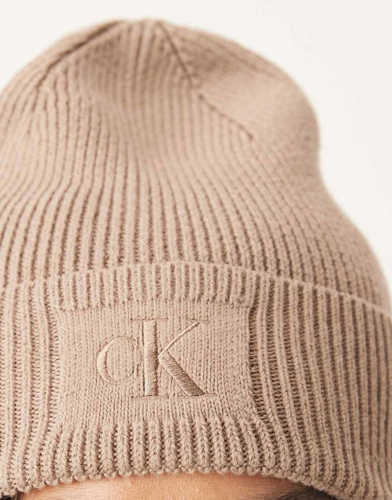 Jeans Embroidered Logo Rib Knitted Beanie In Tan