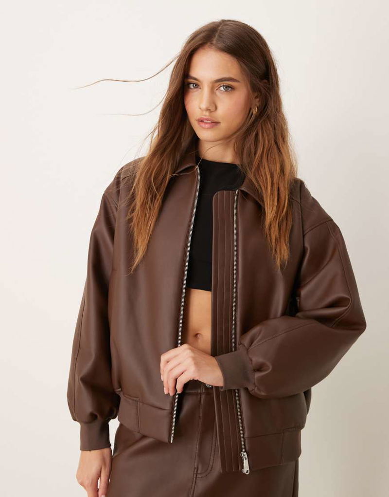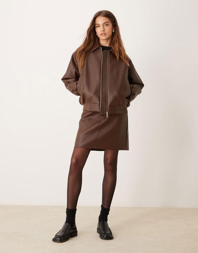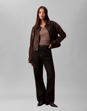 Jeans faux leather bomber jacket.