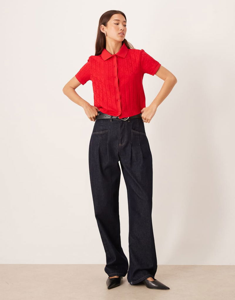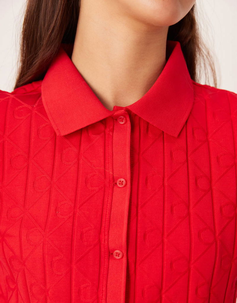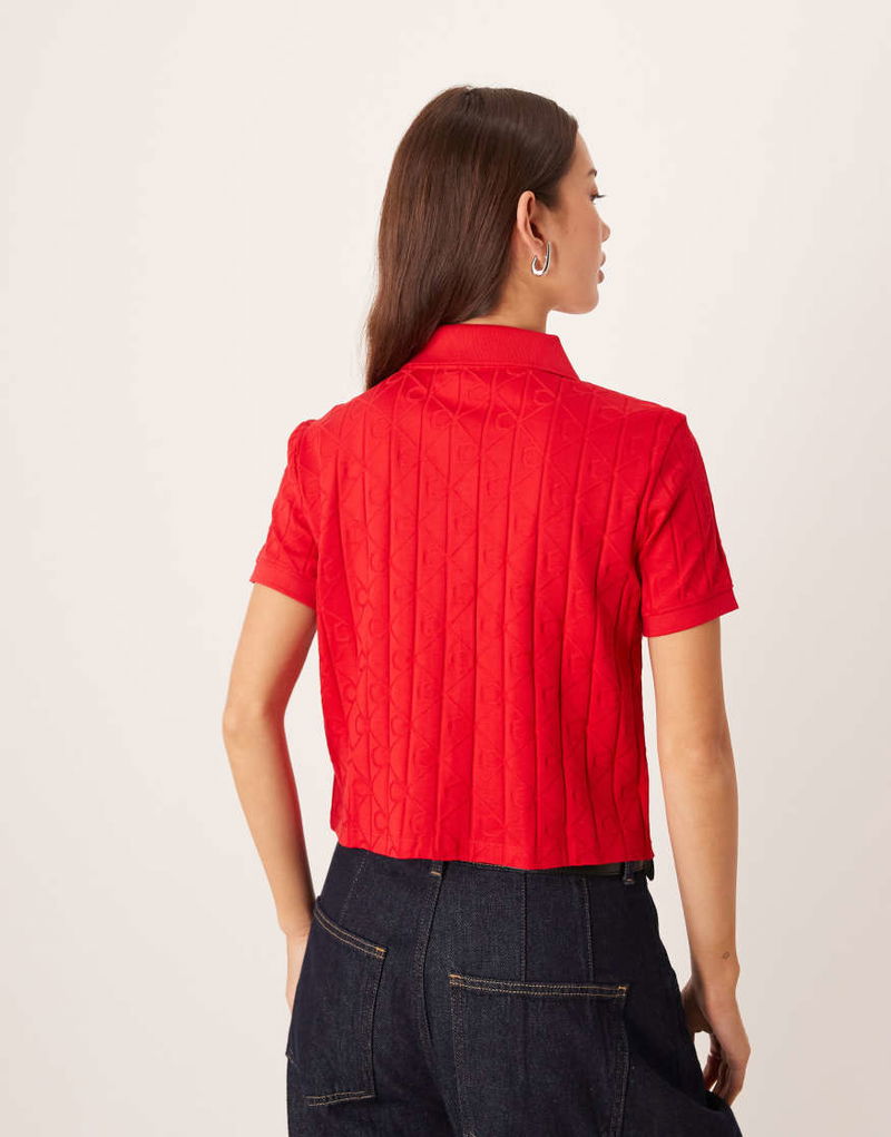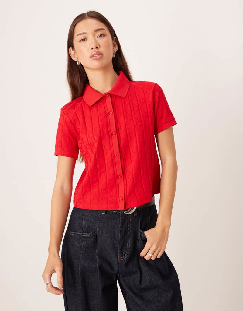 Jeans Jacquard Emblem Crop Shirt In Bright Red
