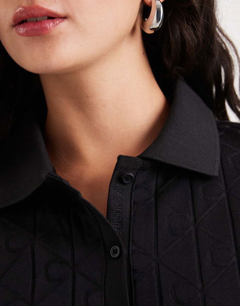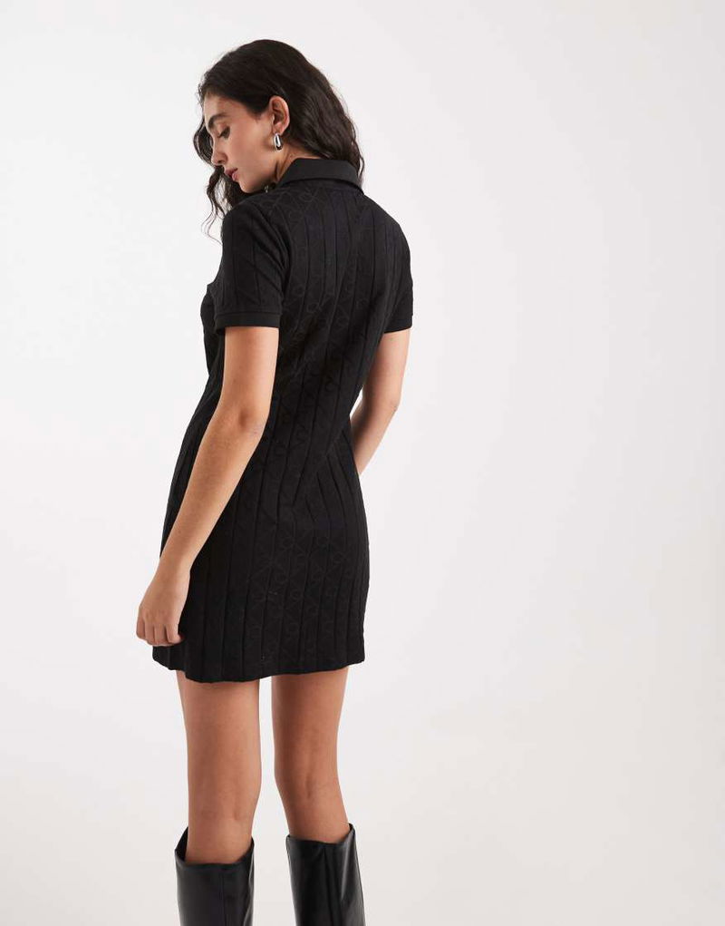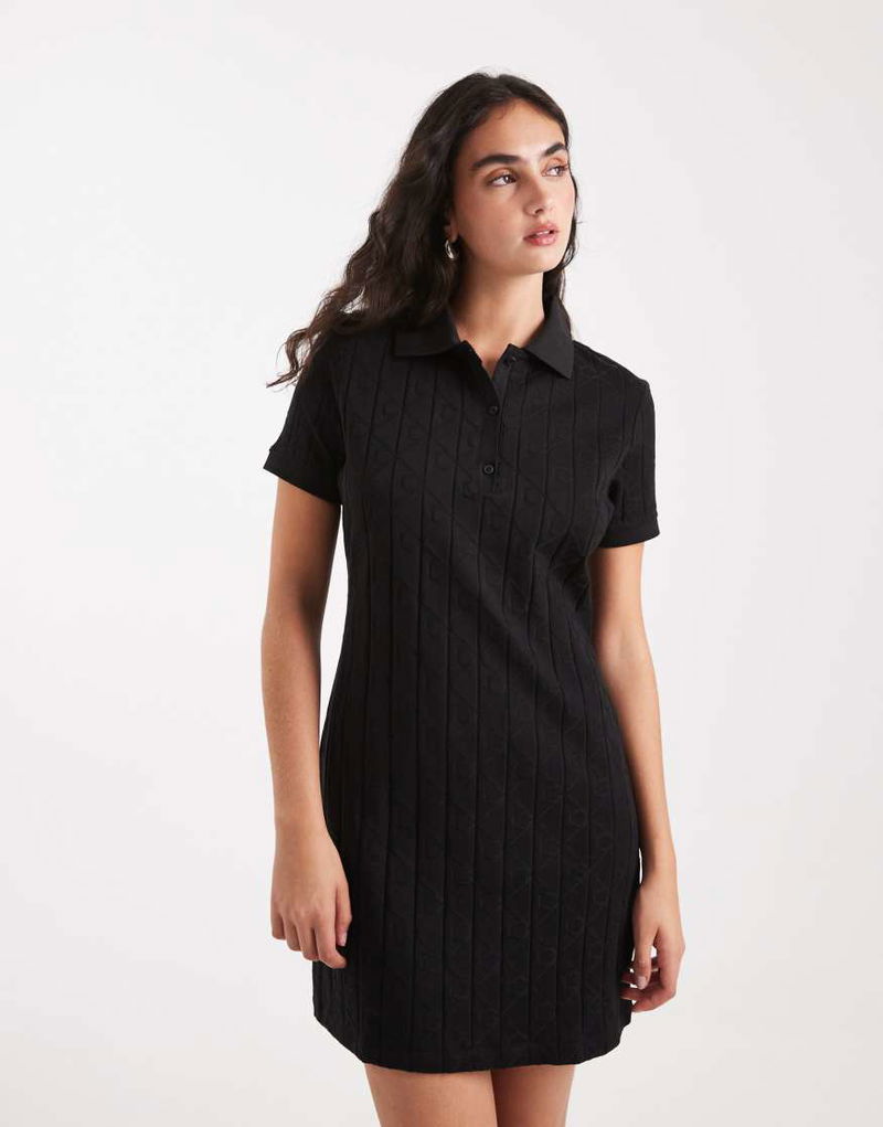 Jeans Jacquard Emblem Polo Mini Dress In Black