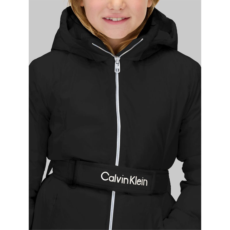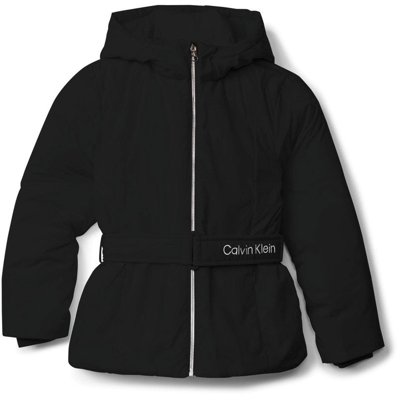 The Calvin Klein Jeans Kids' Belted Medium Puffer Jacket is defined by a waist belt that adds shape. The insulated design provides reliable warmth for cooler weather.