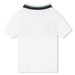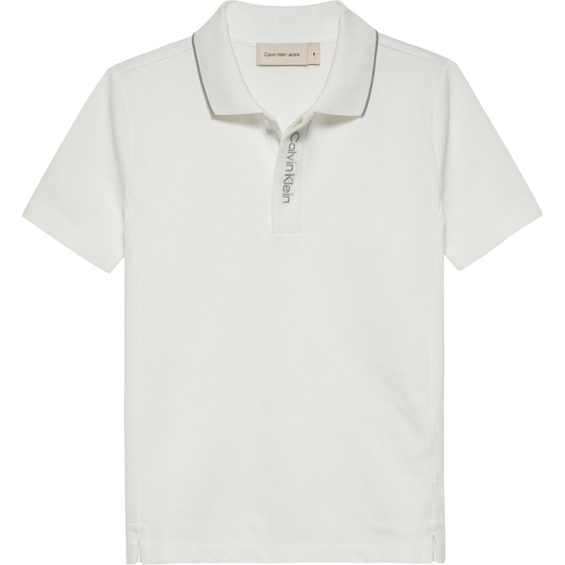 The Calvin Klein Jeans Kids' Embroidered Logo Short Sleeve Polo Shirt is designed for everyday wear with clean lines and a streamlined profile.