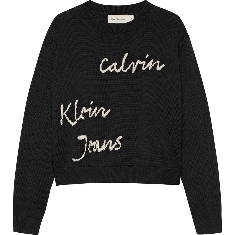 The Calvin Klein Jeans Kids' Handwriting Logo Sweatshirt is designed with a crew-neck for everyday wear.