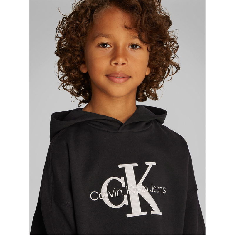 The Calvin Klein Jeans Kids' Ottoman Applique Pull Over Hoodie is built with textured ottoman fabric for structure and everyday wear.