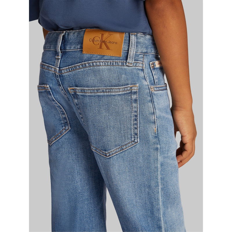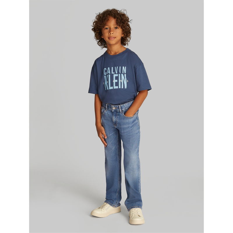 Calvin Klein Jeans' Kids' Straight Leg Jeans feature classic denim design with a straight leg design that moves with active kids while keeping a classic look. The wash offers easy styling with the Calvin Klein look.