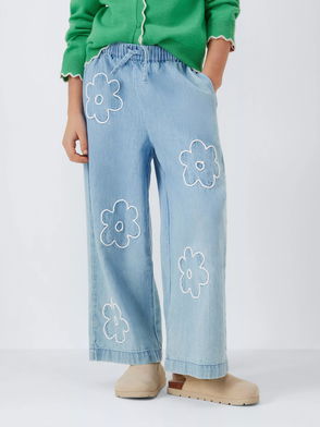 Calvin Klein Jeans Kids' Wide Leg Jeans offer contemporary denim styling with a relaxed fit for children. The roomy cut provides comfortable movement while maintaining the brand's clean aesthetic.