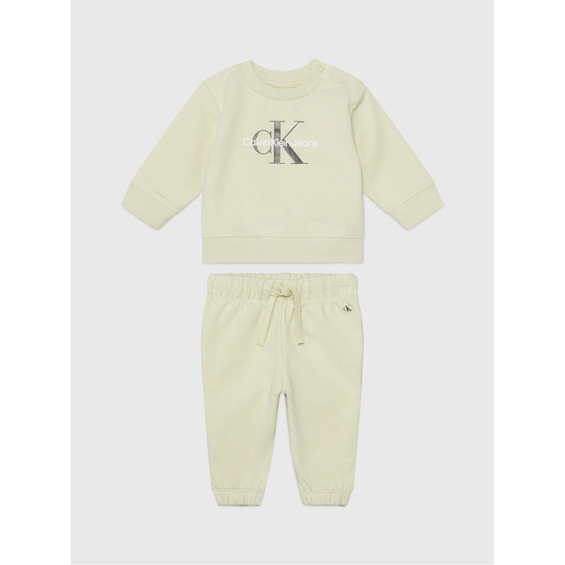 Showcasing a ribbed crew neck and ribbed cuffs which offer a snug and comforting fit. Finished in a solid block colouring and complete with the signature logo graphic on the front. Pair with the matching joggers which highlight an elasticated waistband and drawstring, ensuring a comfortable and snug fit for your little one. Fitted with dual side pockets provide ample storage for tiny treasures. Finished in a solid block colouring and complete with the iconic CK graphic to the leg signing off the look with a premium and sporty aesthetic.