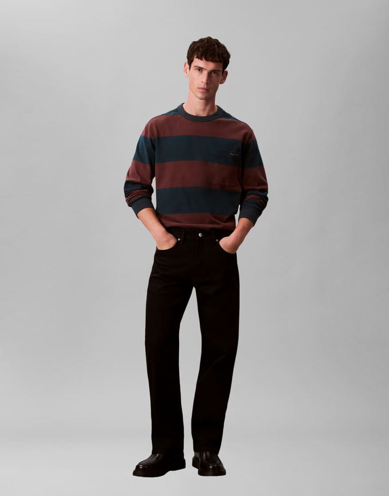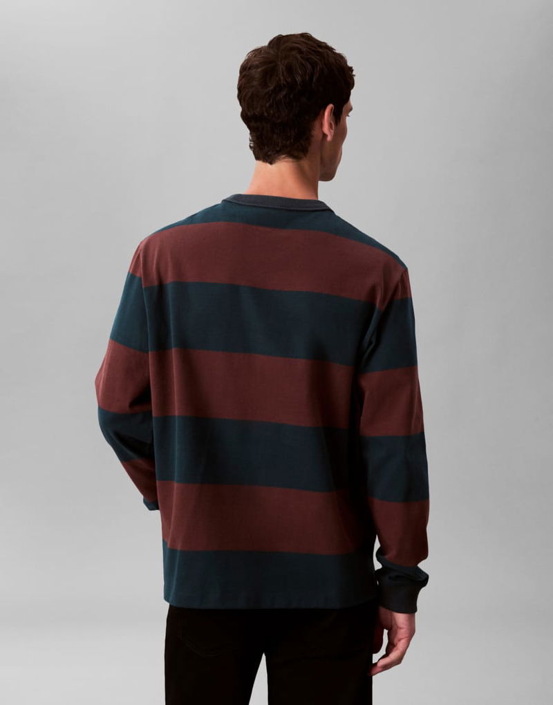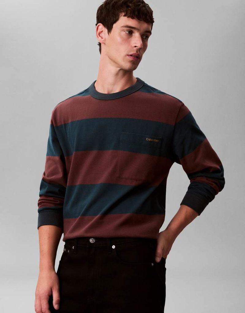 Jeans Long Sleeve Stripe T-shirt In Burgundy & Navy