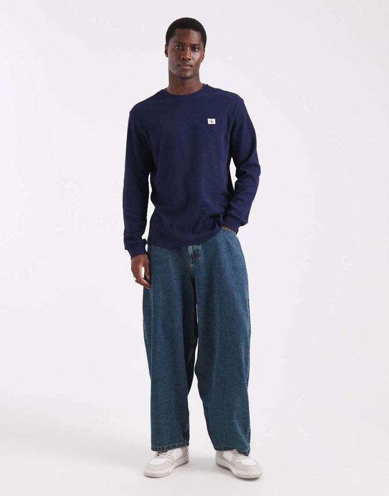 Jeans Long Sleeve Waffle Badge Logo T-shirt In Navy