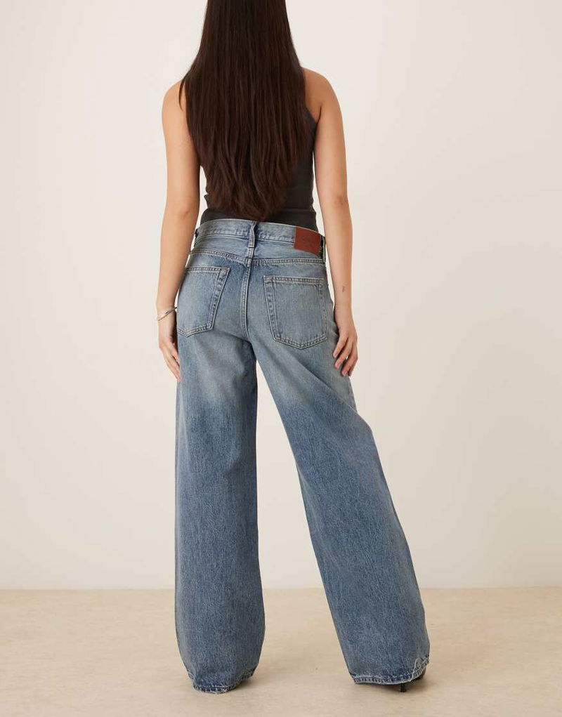 Jeans Low Rise Baggy Jeans In Distressed Mid Wash Blue