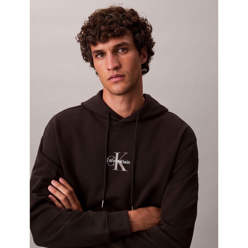 The Calvin Klein Jeans Monogram Pull Over Hoodie features a clean pullover design with a relaxed shape for everyday comfort. Monogram branding adds a streetwear detail.