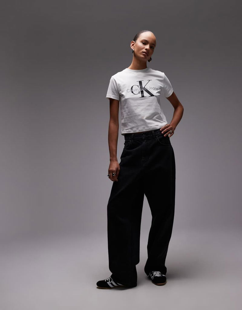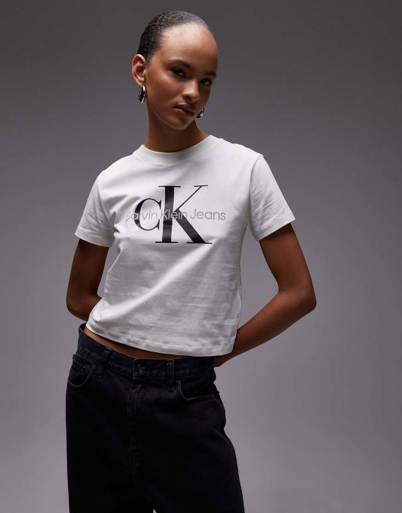Jeans Monologo Baby Tee In Off White