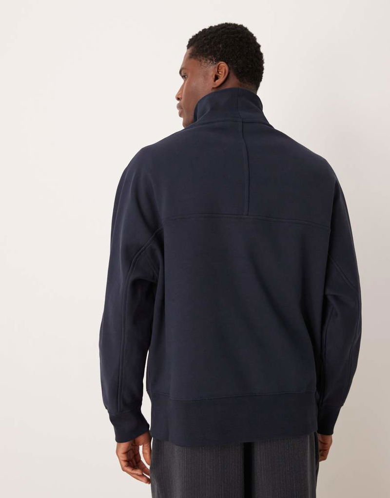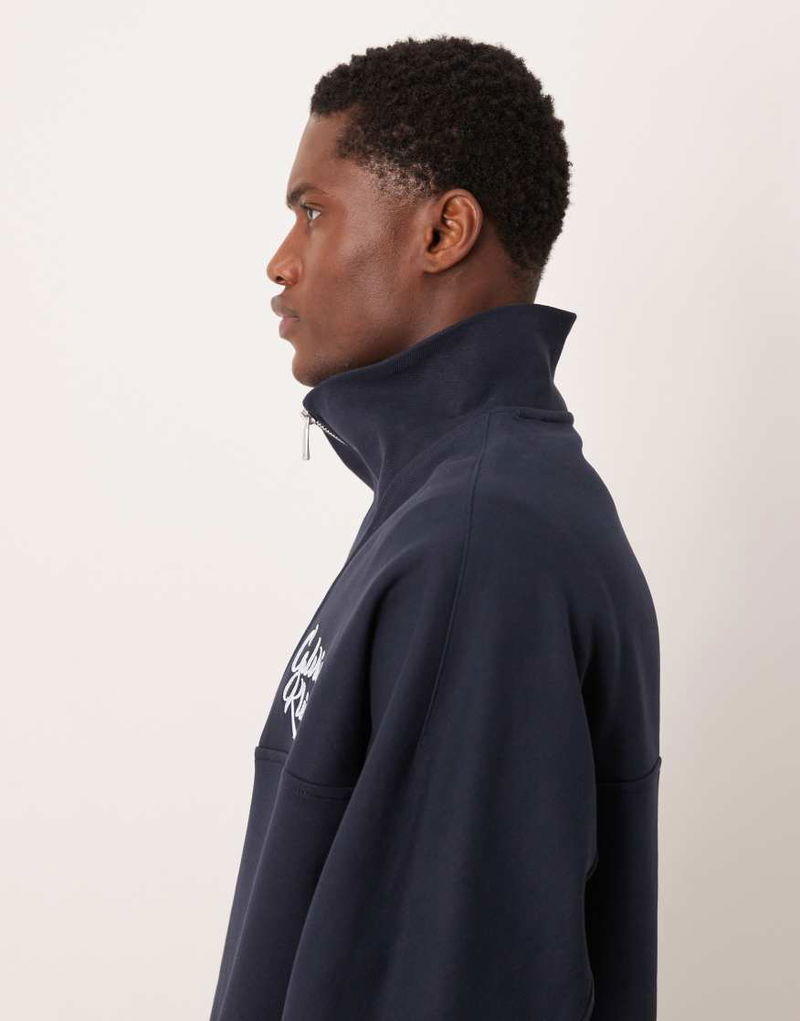 Jeans Script Logo Quarter Zip Cotton Sweatshirt In Navy