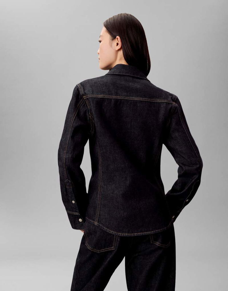 Jeans Seamed Sculptural Denim Top With Cinched Waist In Dark Wash