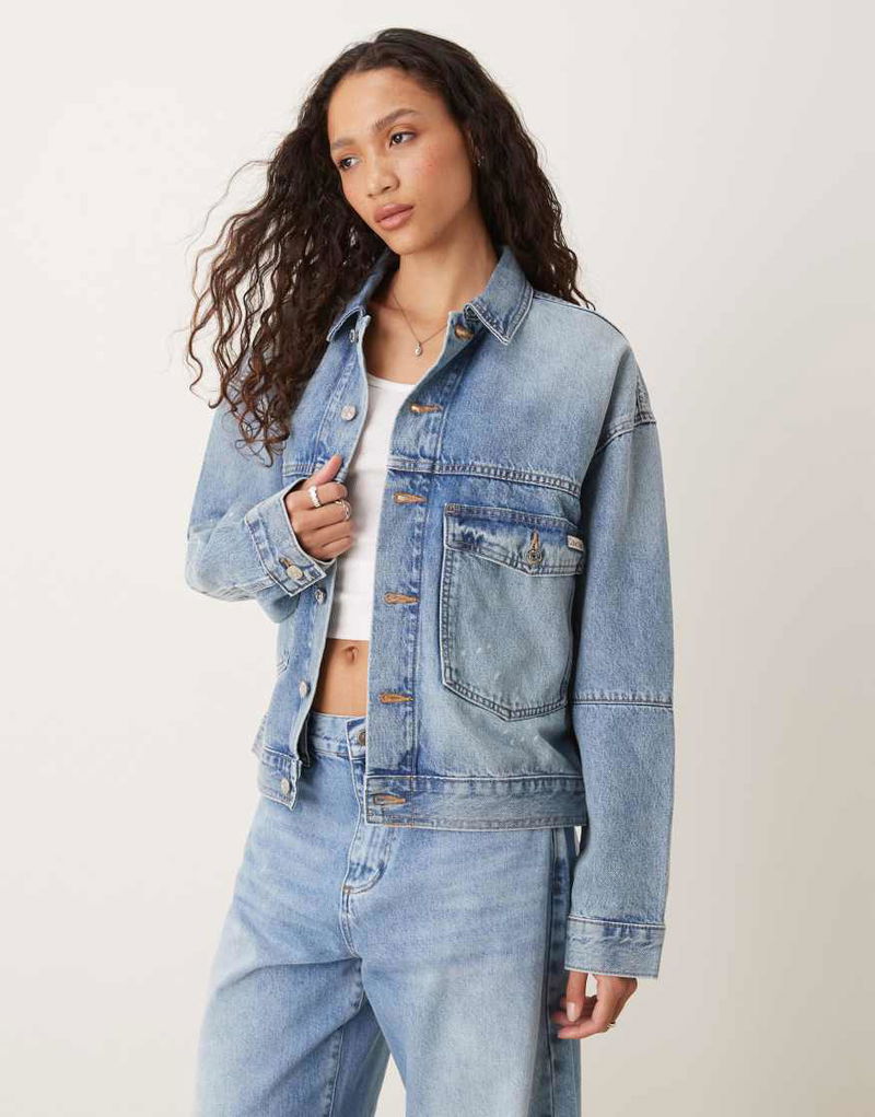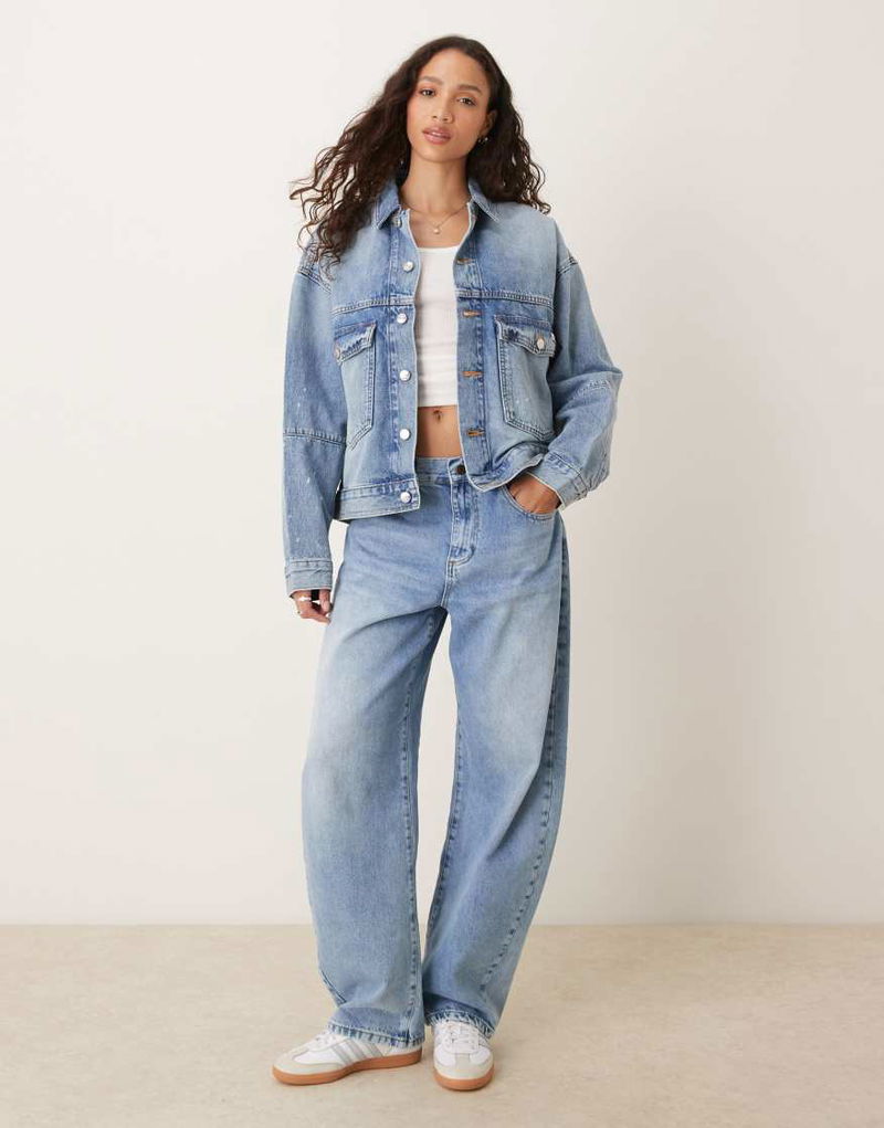 Jeans Splatter Print Denim Jacket In Light Blue Wash