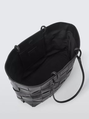 Leather strap tote bag.