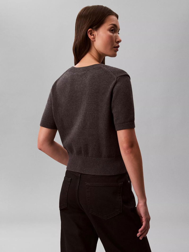 Logo Chunky Knit Short Sleeve Jumper, Charcoal Heather