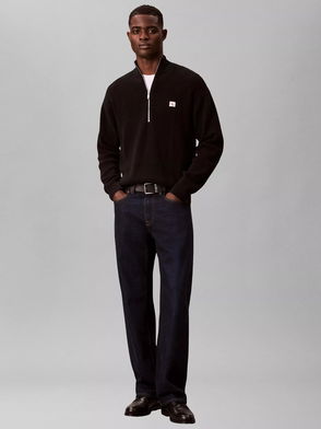 Refresh your casual looks with this Calvin Klein Jeans quarter zip jumper. Featuring cuffed sleeves and hem for the perfect fit, this cotton blend jumper is sure to become a favourite this season. Finished with bold logo printed on the chest.