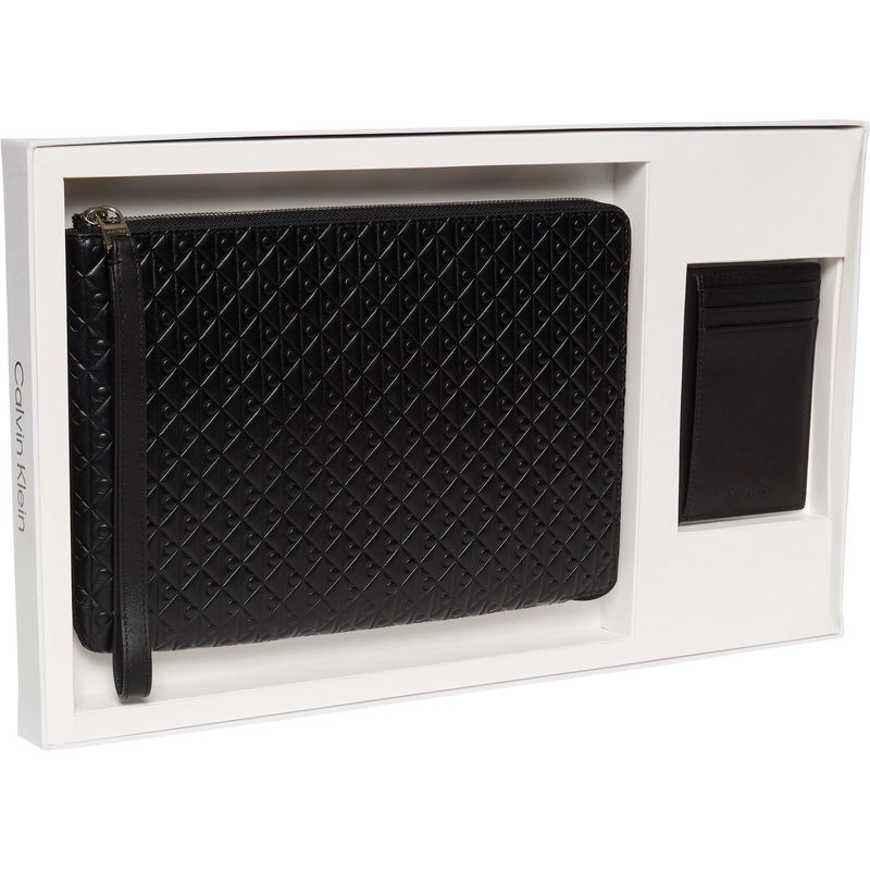 Calvin Klein's Men's Embossed Emblem Zipped Pouch & Cardigan Case Gift Set delivers practical style for everyday organisation. This pairing features the CK emblem embossed on quality materials, offering both style and functionality in one complete presentation.