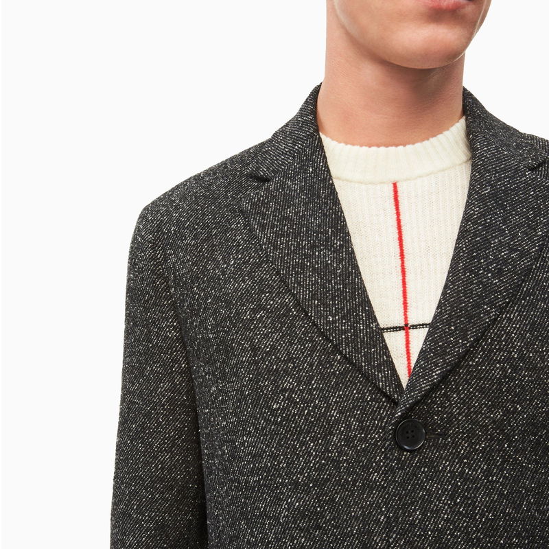 Calvin Klein's Overcoat delivers winter styling. Made from fabric, this structured coat features clean lines and a contemporary shape that transitions well from business to evening wear.