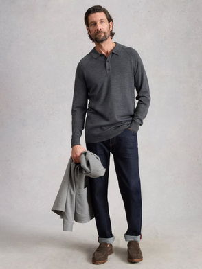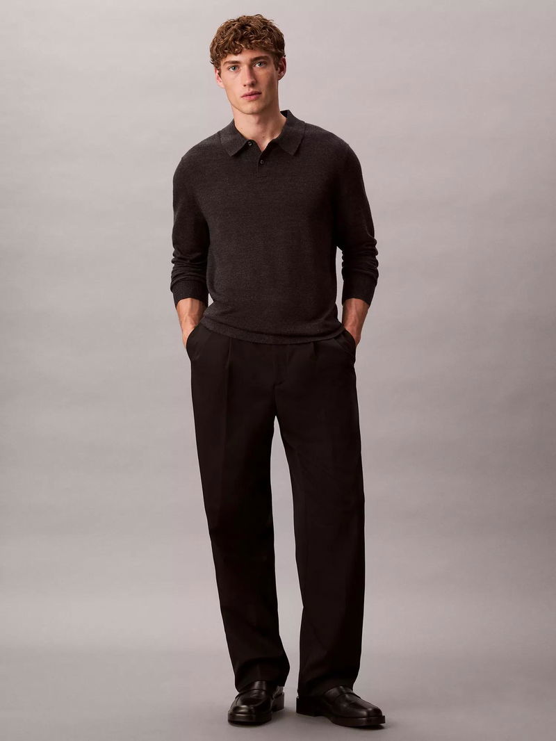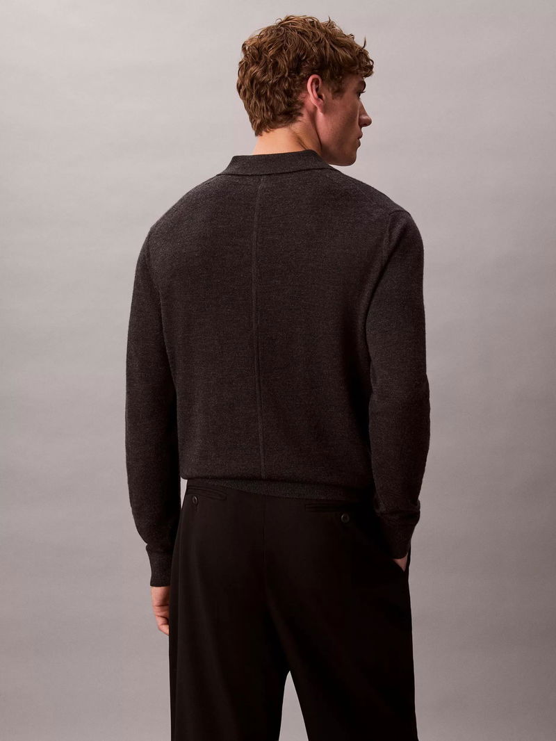 Merino Wool Knit Polo Shirt, Gunmetal Heather