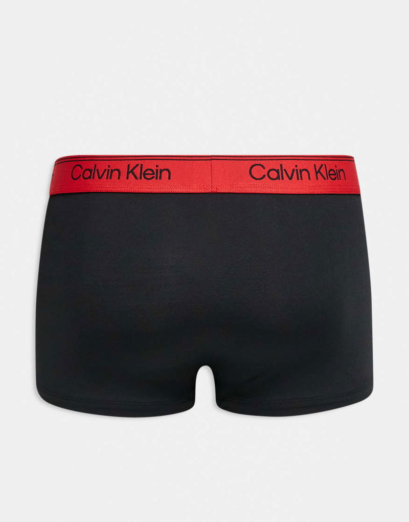 Micro Stretch 3 Pack Low Rise Trunks In Black With Grey/red Waistbands