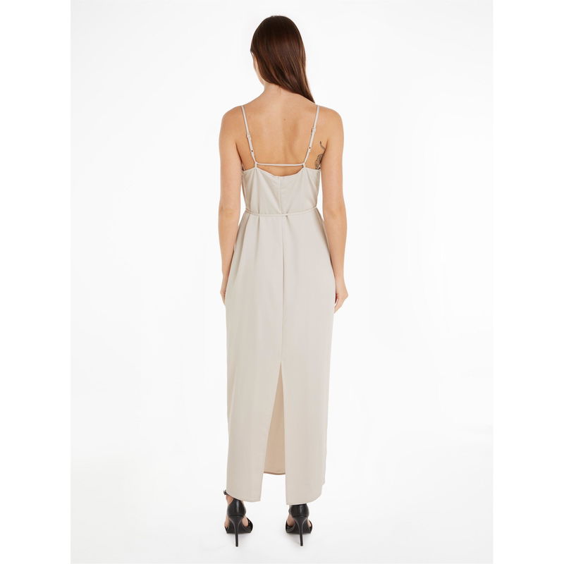 Refresh your collection with the Midi Slip Dress from Calvin Klein. Designed with a deep V neckline framed by twin spaghetti straps, this dress is cut to a slim fit and midi length to create a chic slip silhouette. Made from recycled polyester to add a sustainable touch, this dress is finished with a side split to the hem for comfortable wear.