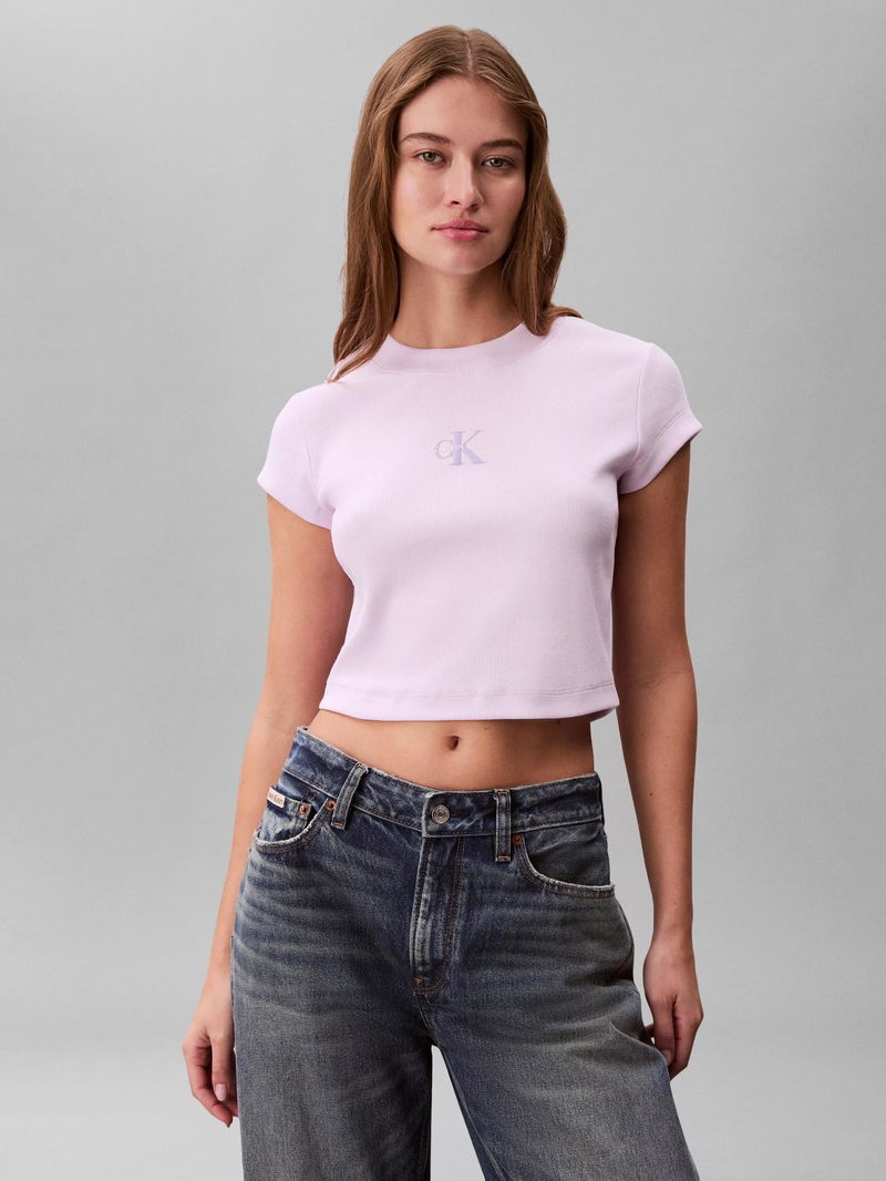 Monogram Logo Ribbed Baby T-Shirt, Island Lilac