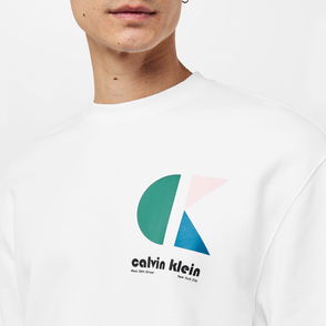 Mens Calvin Klein Natural Structure Crewneck Sweatshirt in beige. Ribbed crewneck. Ribbed cuffs and hem. Calvin Klein logo patch. Regular fit.