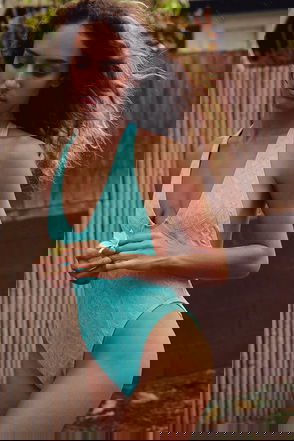 One piece swimsuit from Calvin Klein. This swimsuit elegantly accentuates your waist.