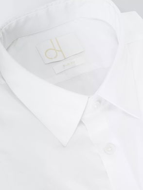 Do the smart thing Spread collar Button placket Logo embroidery Buttoned cuffs Slim fit.