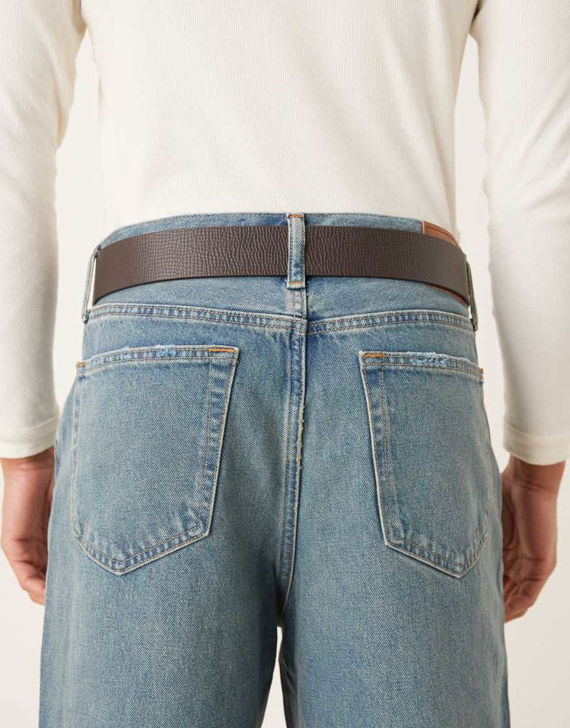 Real Leather Belt With Silver Buckle In Dark Brown