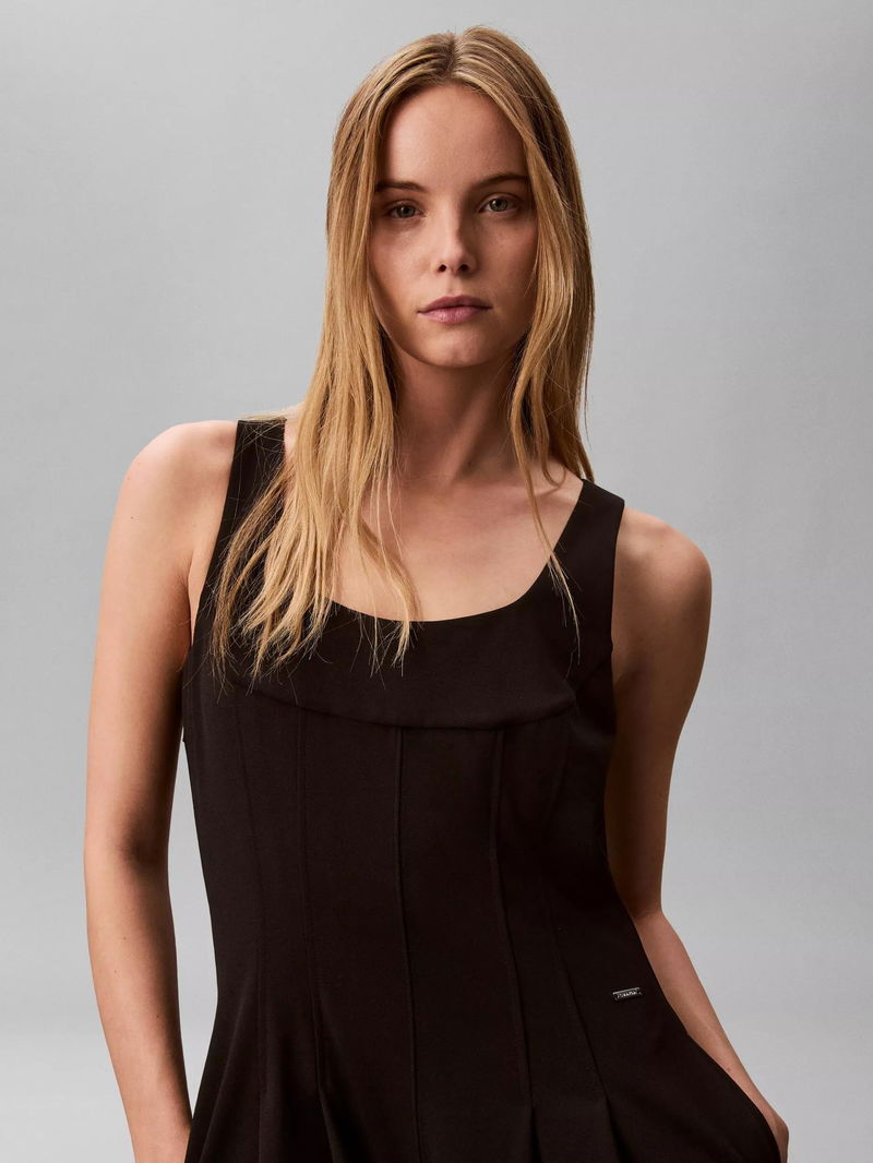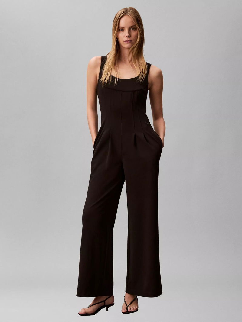 Step into any moment with confidence in this tailored sleeveless jumpsuit. The scoop neck and plain design offer smart versatility, while the zip fastening keeps things easy.