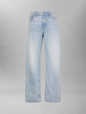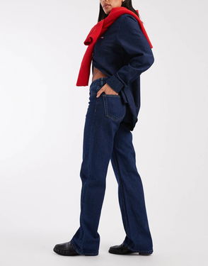 Straight fit Mid rise Belt loops Five pockets Branded patch to reverse.