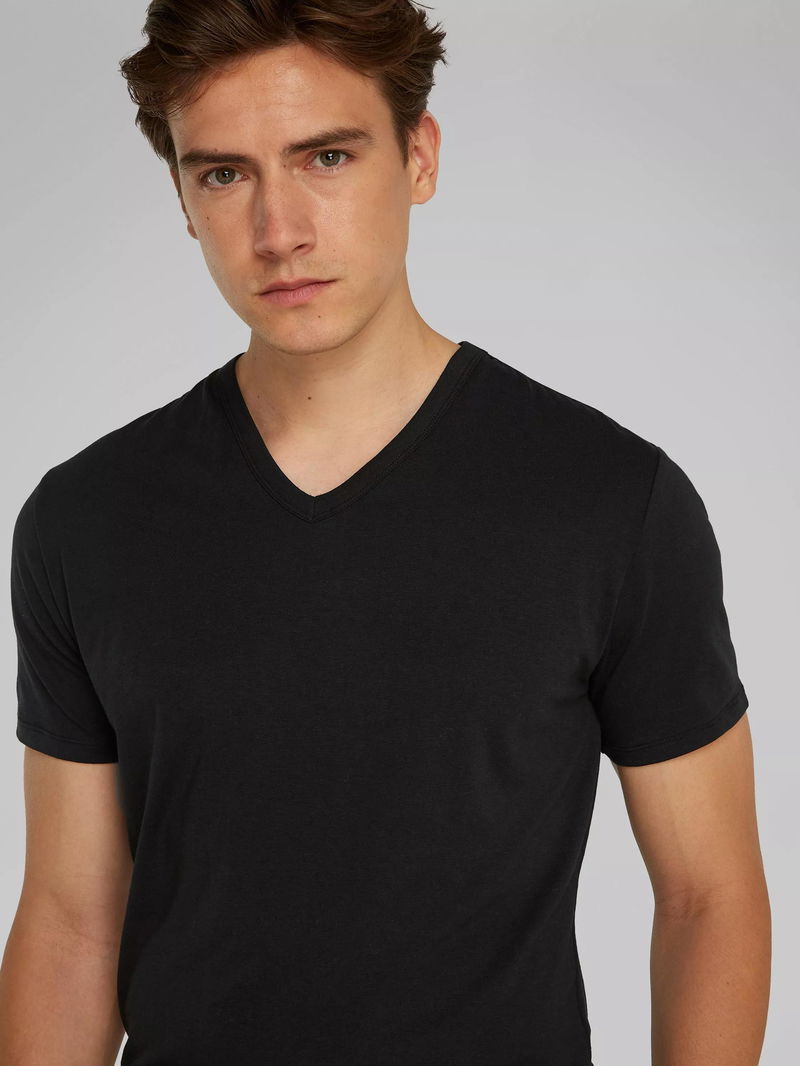 V-Neck Lounge T-Shirt, Pack Of 3, Black