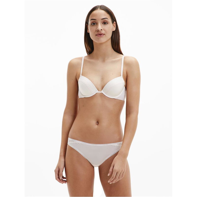 Calvin Klein's Flirty Push-Up Underwire Lace Plunge Bra offers functionality with an attractive design. The plunge design features textured fabric at the front, while underwire support and foam padding create a flattering shape.