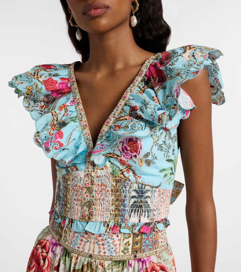 Cropped Cold-shoulder Printed Cotton-poplin Top