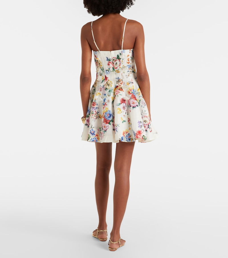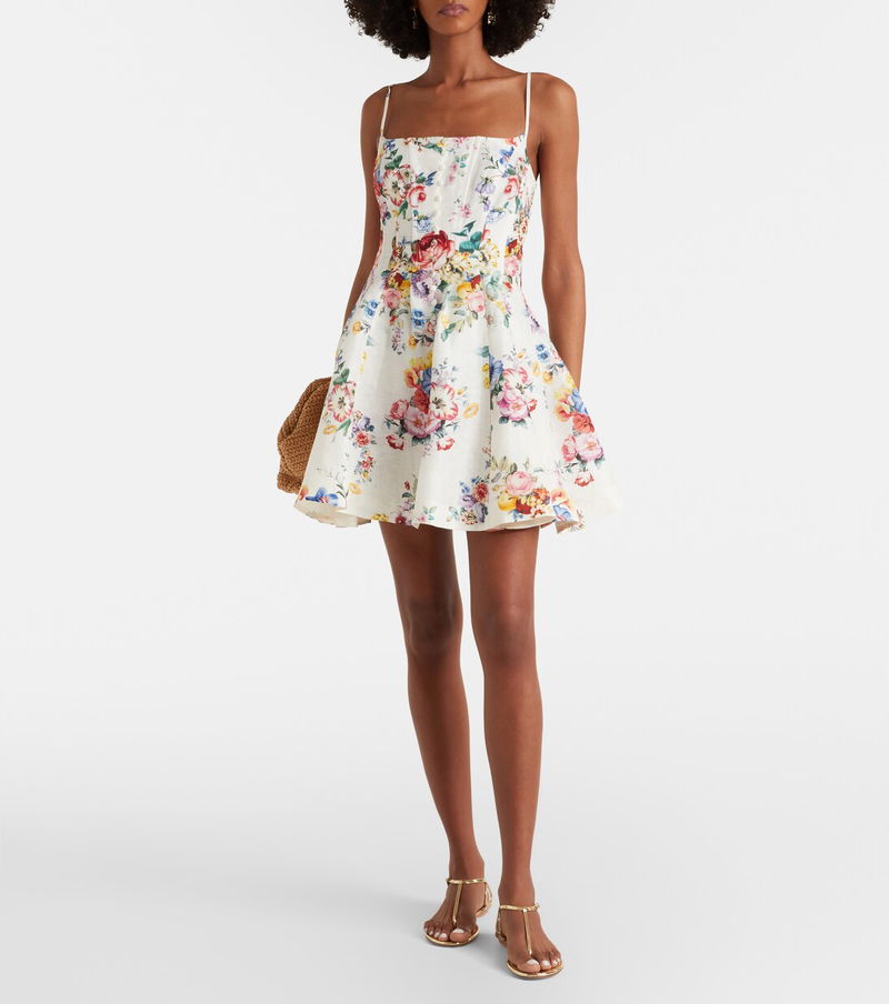 Floral Linen And Silk Minidress
