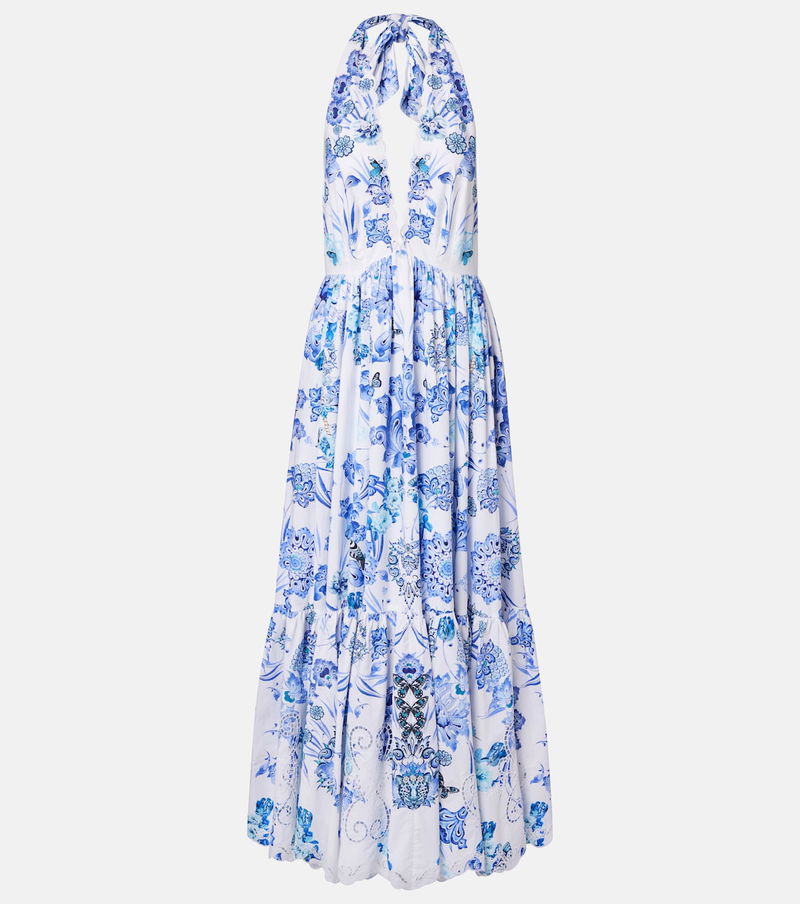Embellished Halterneck Cotton Poplin Maxi Dress