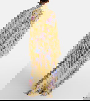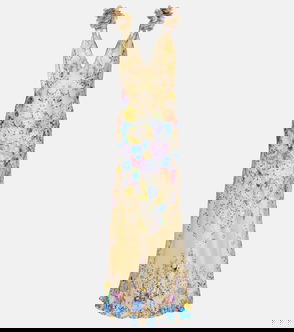 Embellished Floral Ruffled Silk Satin Maxi Dress