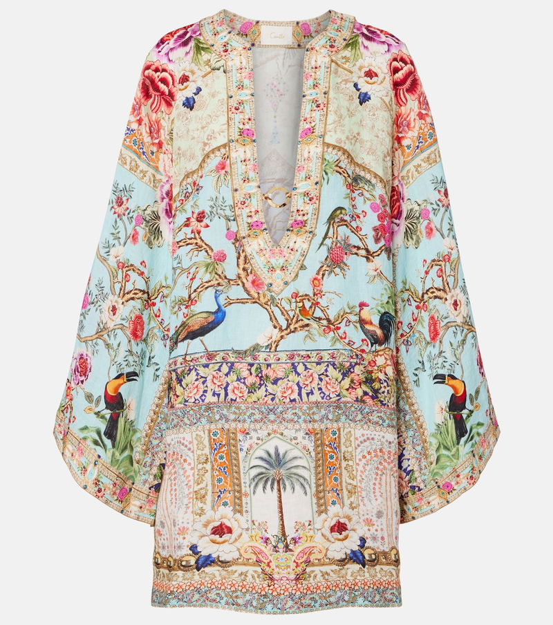 Floral-appliqué Gathered Silk Crêpe Minidress