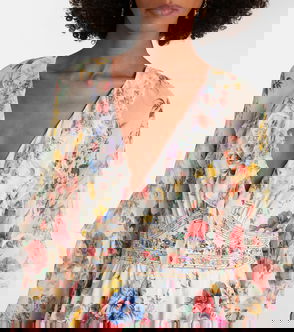 Floral linen and silk minidress.