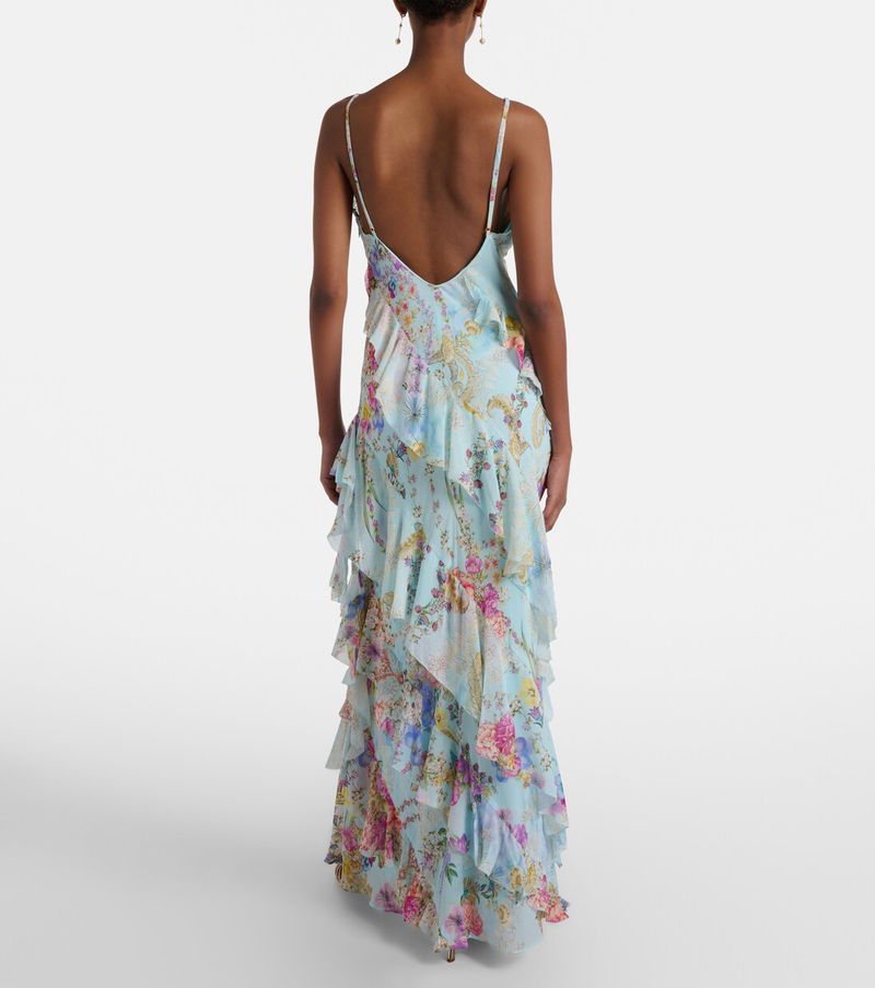 Maximalists adore Camilla's hand-drawn prints and precisely placed embellishments. This silk slip dress is designed with all-over ruffling and flaunts a lace-trimmed V-neckline and a colorful floral motif.