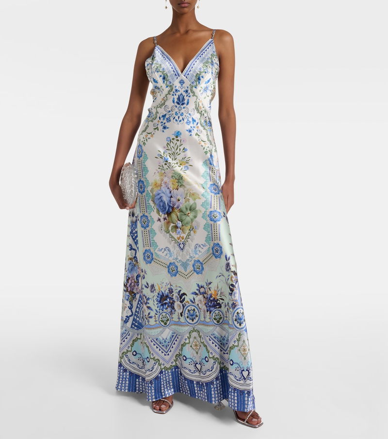 Tiled In Time Lace-trimmed Silk Maxi Dress